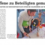 Im September 2013 führten wir auf dem Martigny Platz die Mitmachaktion “Nägel mit Köpfchen” durch. Etwa 200 Menschen nahmen daran teil. Sie schlugen auf einem grossen Stadtplan grüne Nägel für günstige und rote für problematische Situationen ein. Aus den Resultaten wurde ein Bericht erstellt, der zusammen mit dem Plan dem Stadtrat Sursee im November 2013 vorgestellt und besprochen wurde.