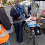 Ziel unserer Mitmachaktion war, Passantinnen und Passanten das Einkaufen mit dem Velo schmackhaft zu machen. Dafür stellten wir die neuesten Transportvelos vor, sowie verschieden Taschen, Körbe und Anhänger, die den Einkauf mit dem Velo erleichtern.